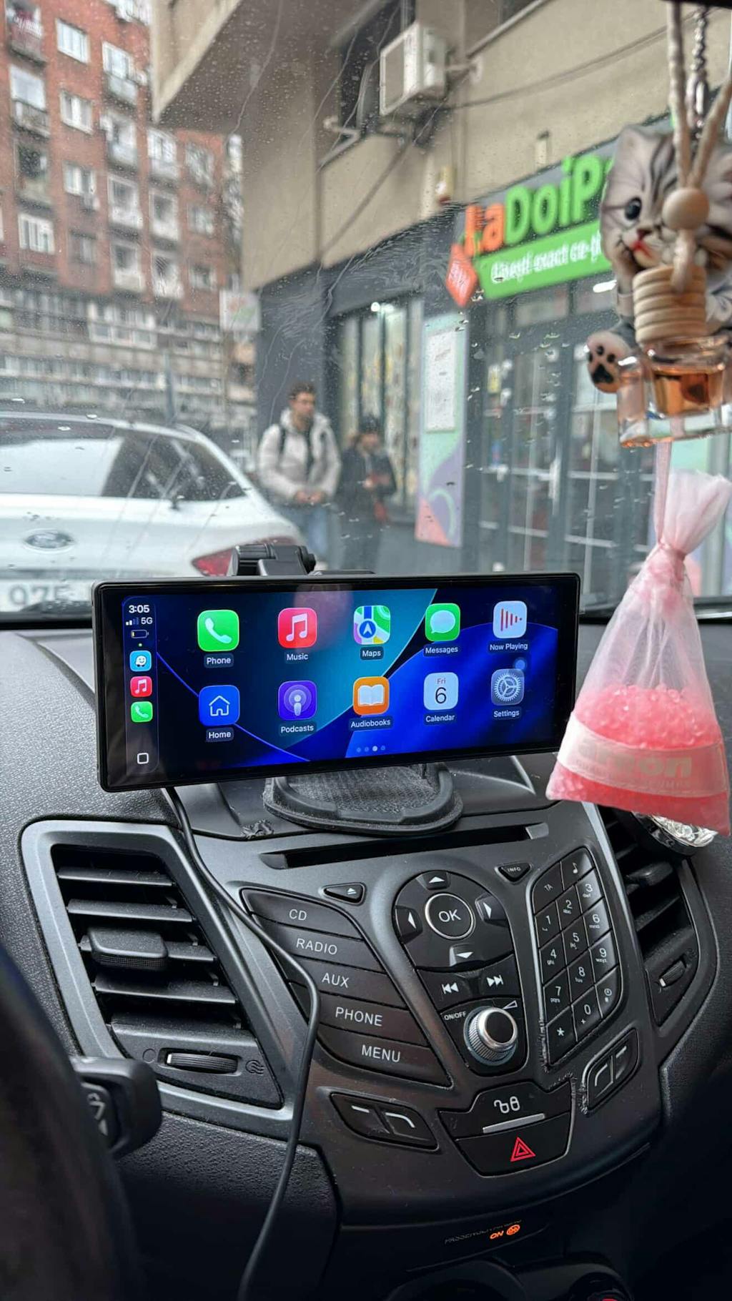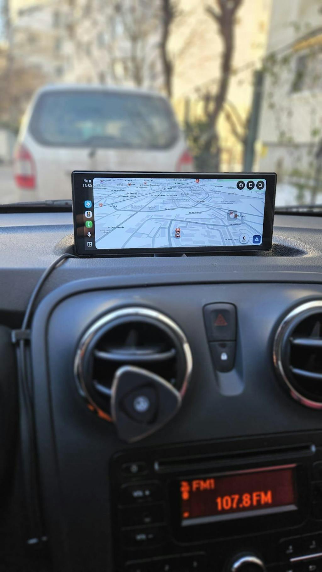 Mi-am tras și sunetul prin intrarea de auxiliare a mașinii. Pe telefon am o aplicație de tip radio care se regăsește pe Carsync, pe lângă navigația pe Waze (pe care o folosesc de regulă).